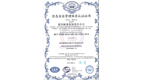 2021年9月15日,建信融通顺利通过ISO27001体系认证,ISO27001认证是国际上最权威、最严格、也是最被广泛应用的信息安全标准。此次认证标志着建信融通系统化、标准化的信息安全管理体系建设再上新台阶,为平台各项业务安全稳健、高效有序的可持续发展进一步筑牢了基础保障。